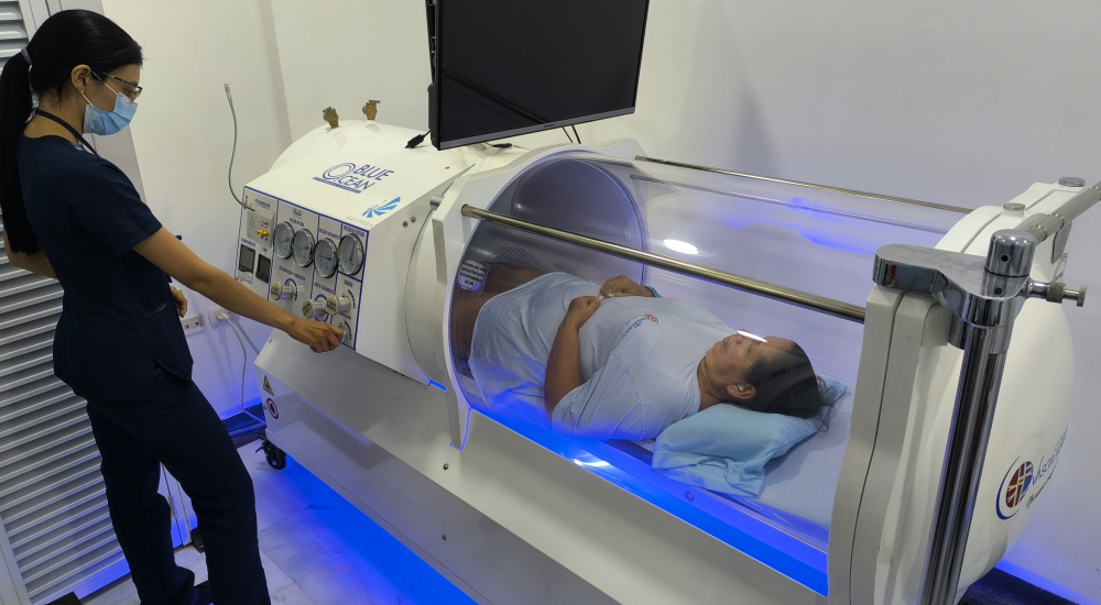 Utilizamos oxígeno puro en una cámara presurizada (cámara hiperbárica) para acelerar la cicatrización de heridas, infecciones, pie diabético, lesiones por radiación o quemaduras. Este tratamiento también es recomendado para postoperatorios, deportistas de alto rendimiento, lesiones deportivas, entre otros. Es una terapia segura, efectiva y regenerativa.